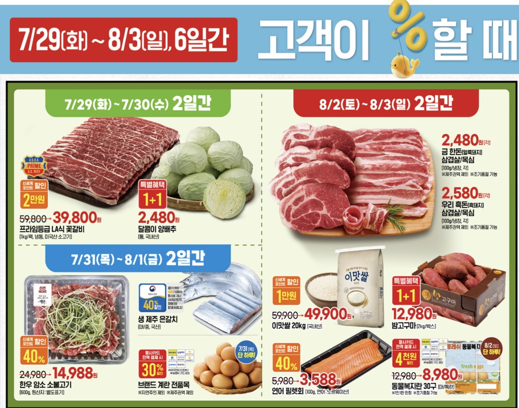 - 수입 삼겹살/목심 – 100g당 788원 (7/29~30 단 이틀 한정!)