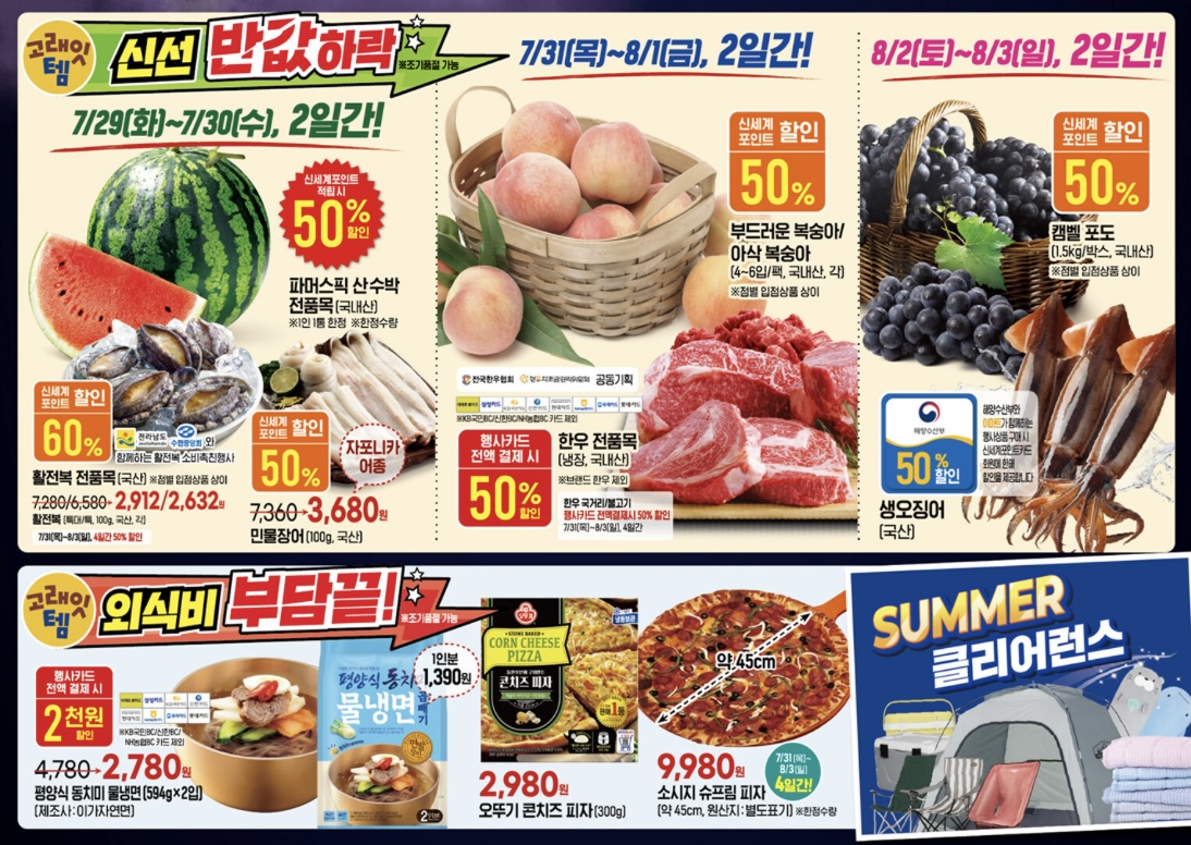 - 주제: 여름 장보기 피날레! 초특가 상품 총출동